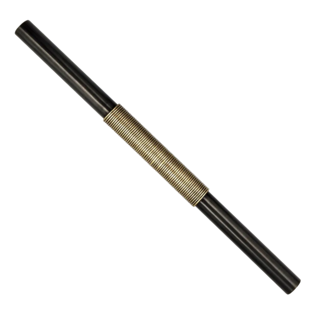 Le design se caractérise par un barreau circulaire de couleur Canon de fusil, une teinte subtile qui met en valeur la texture du métal. Le fil de laiton s'enroule élégamment autour de la partie centrale, apportant une touche décorative et un raffinement supplémentaire à l'ensemble.