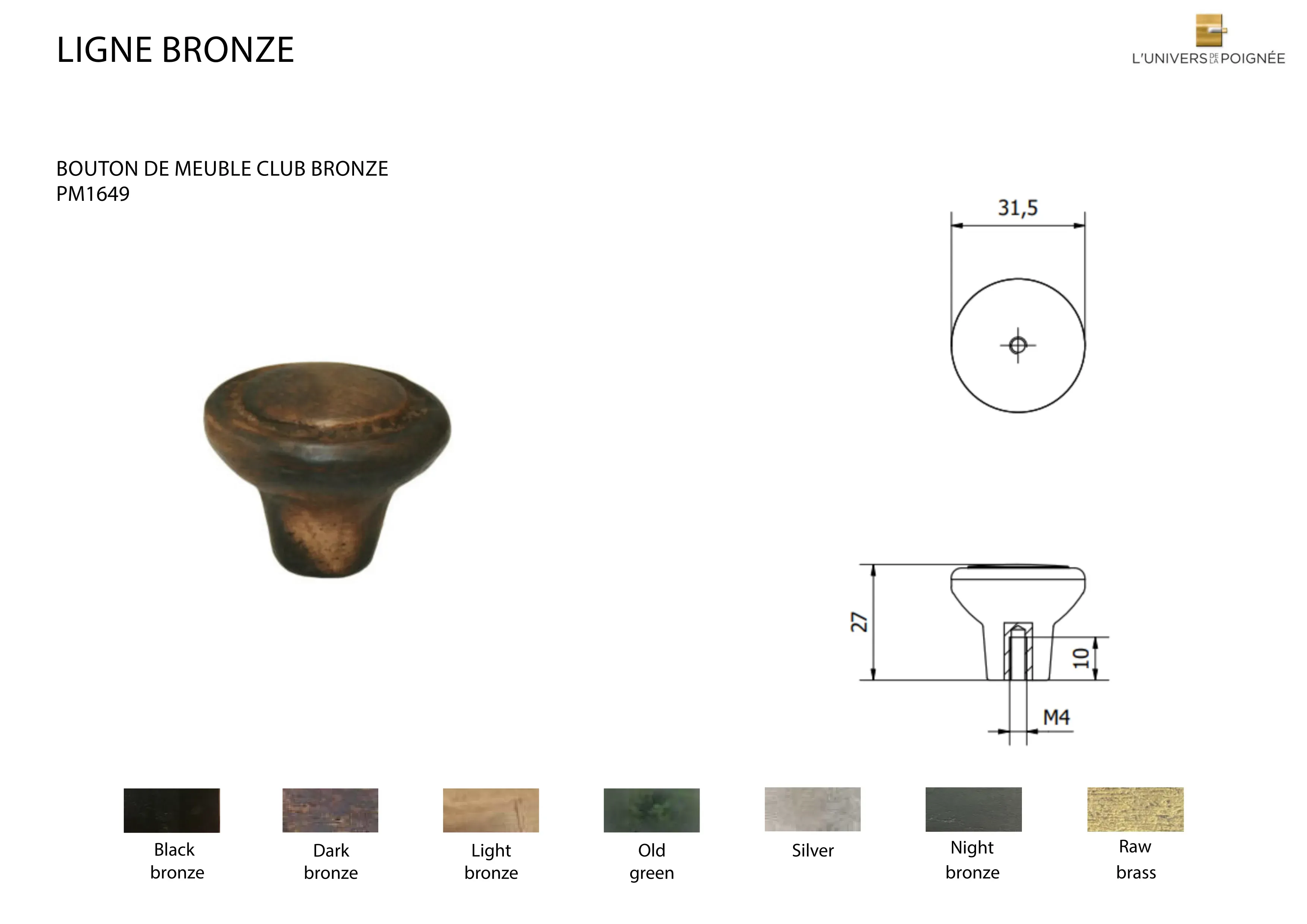 Bouton de meuble Club Bronze