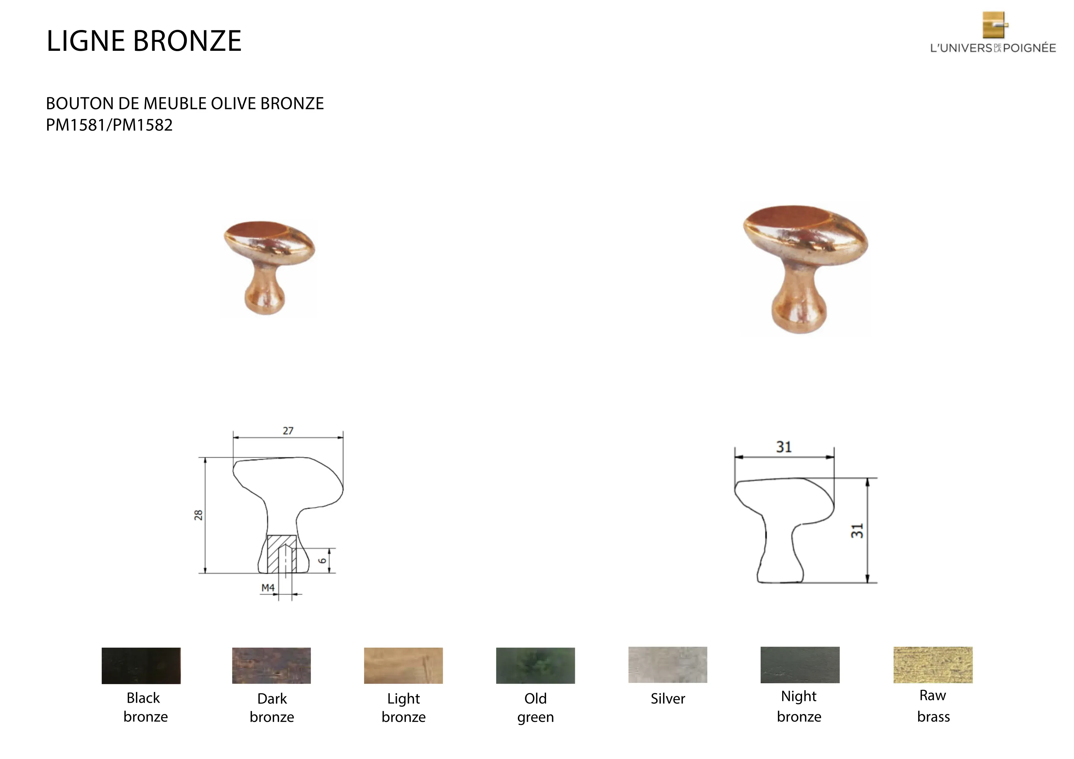 Bouton de meuble Olive GM Bronze