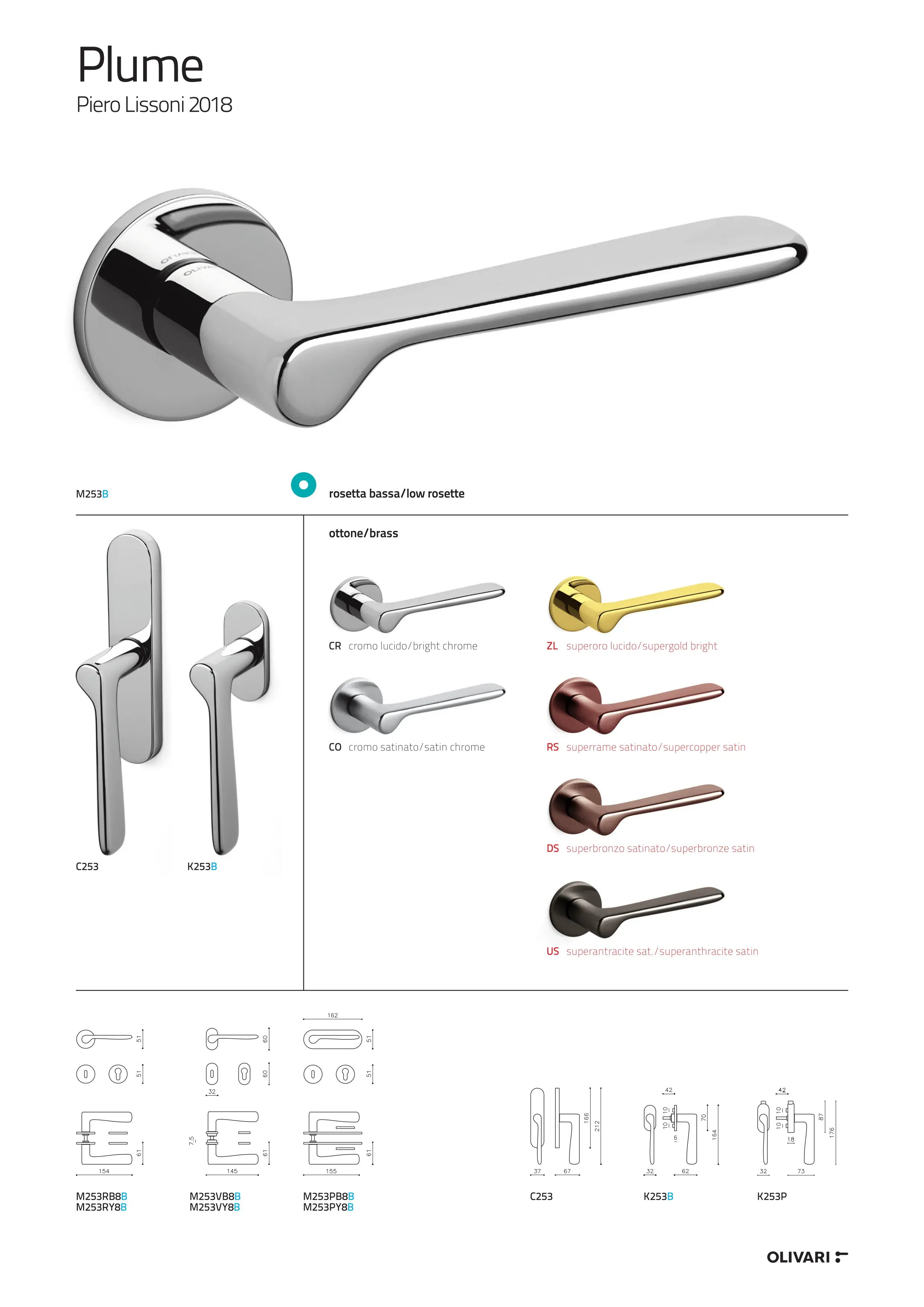 Poignée de porte PLUME rosace ronde